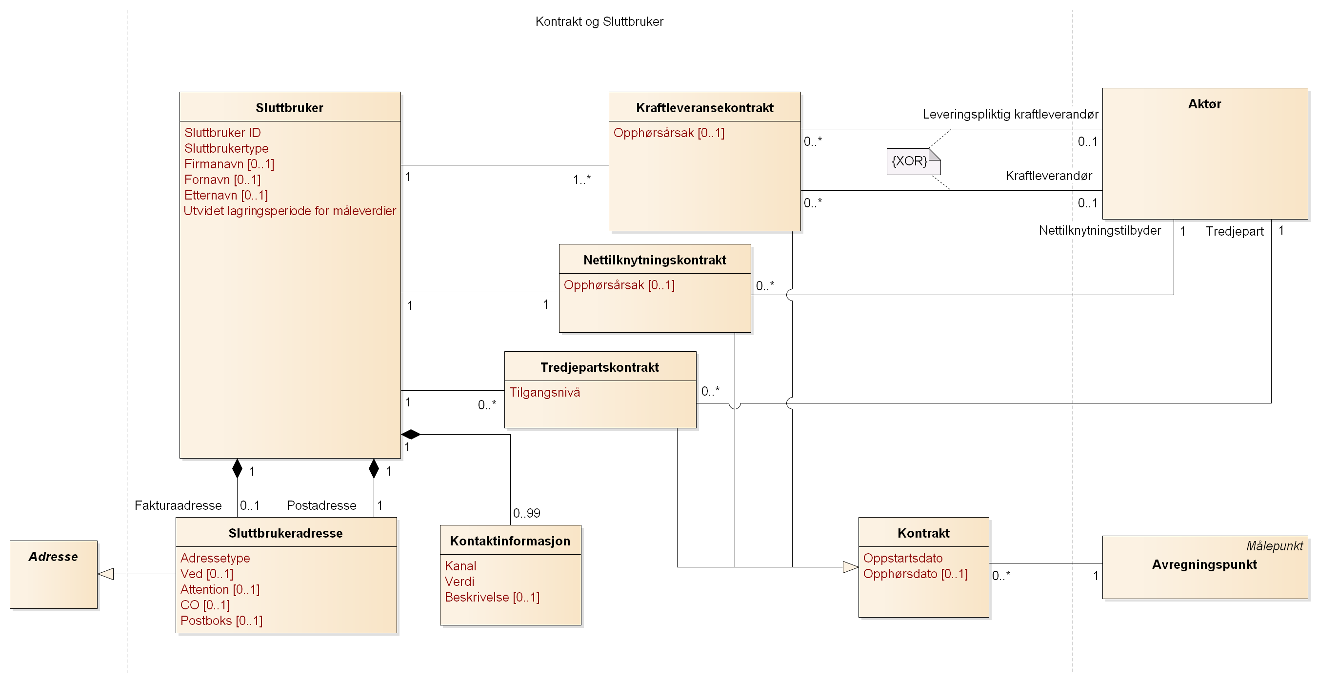 Beskrivelse av attributtene relatert til Kontrakt og Sluttbruker